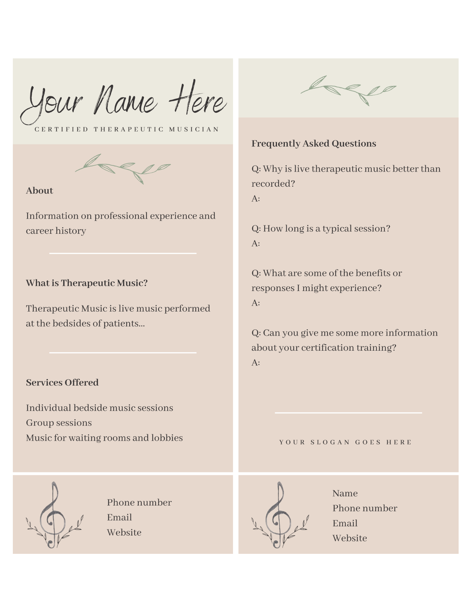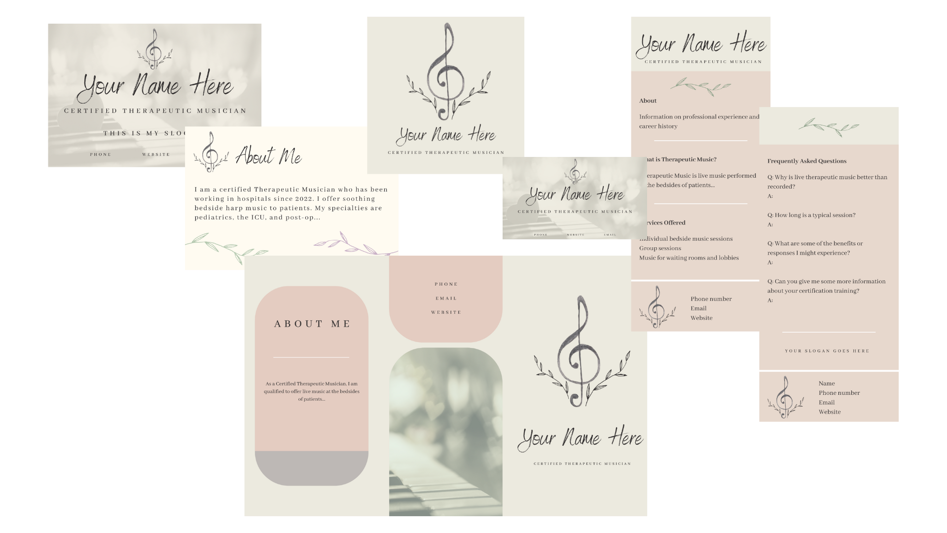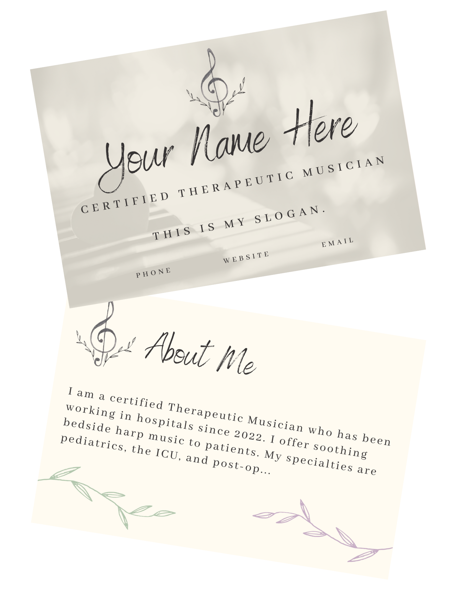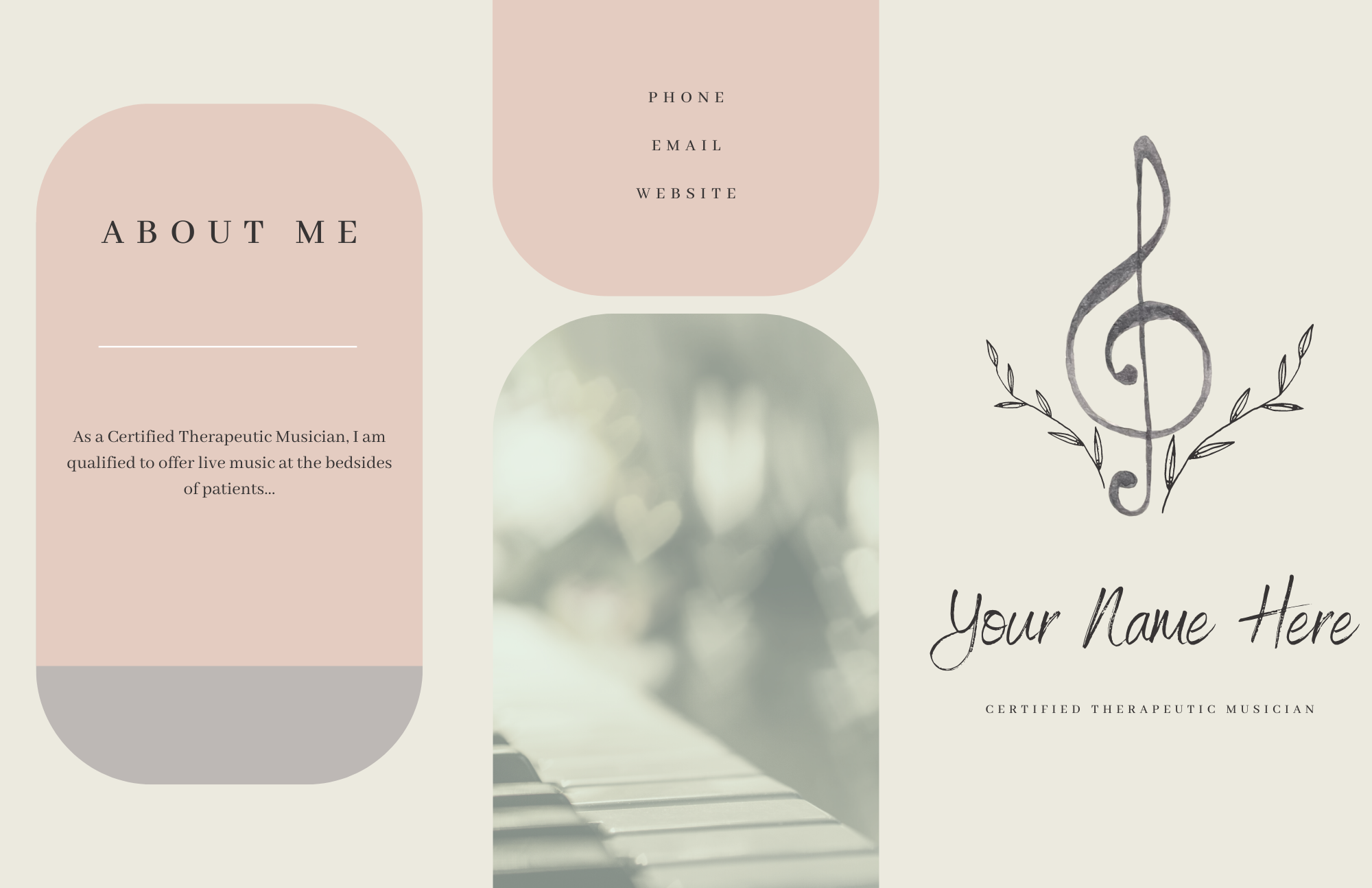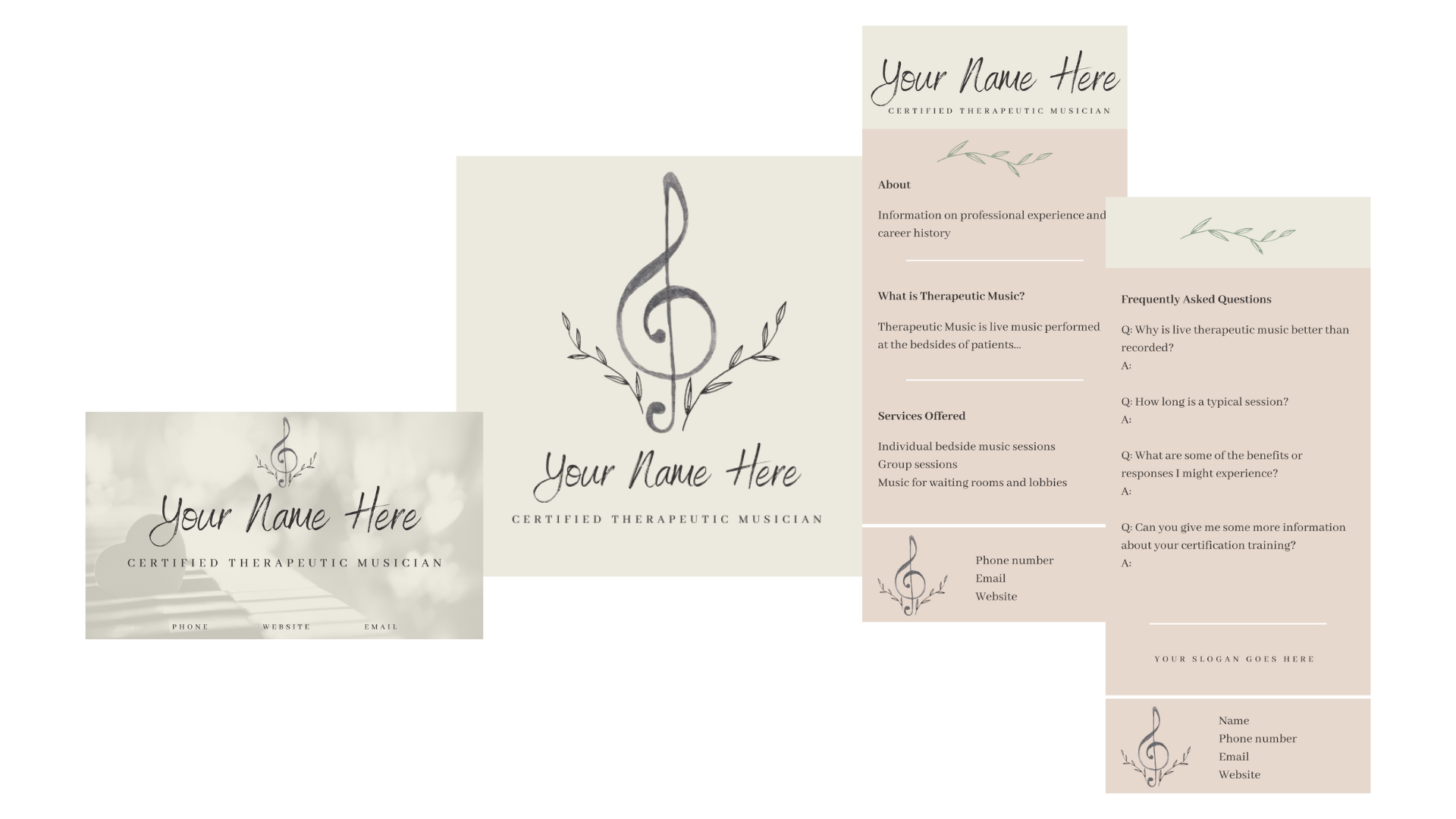 As a fellow TM, Nicole shares your vision for your healing music practice. Her graphic designs have garnered many accolades in the therapeutic music world. Recently, she took on the project of redesigning the new website and logo for the National Standards Board for Therapeutic Musicians.